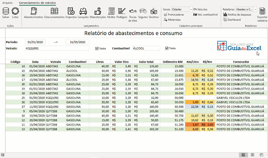 Planilha de controle de frota de veículos Excel + Curso Master Excel Básico Avançado VBA Power BI